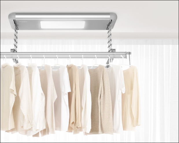 Aqara Smart Clothes Dryer Lite может автоматически опускаться, позволяя пользователям повесить одежду, а также автоматически, если немного подтолкнуть устройство вверх. Вся механическая установка приводится в действие двигателем постоянного тока c высоким крутящим моментом и длительным сроком службы.