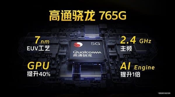 В основе аппаратной платформы смартфона лежит SoC Qualcomm Snapdragon 765G, дополненная baseband-процессором Snapdragon X52 с поддержкой двух режимов 5G — SA и NSA. Дисплей характеризуется диагональю 6,57 дюйма, охватом цветового пространства DCI-P3 и поддержкой HDR10.