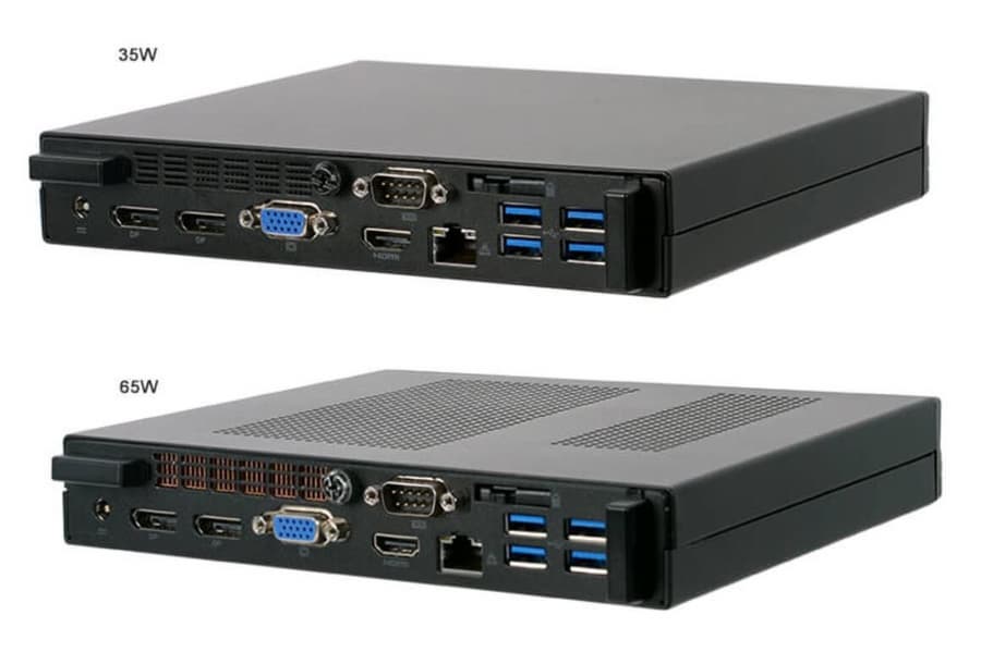 Оснащение мини-ПК включает три порта USB 3.2 Gen2, один из которых выведен на разъем USB-C, и четыре порта USB 3.2 Gen1, порт 1 GbE, беспроводные интерфейсы Wi-Fi 802.11ac и Bluetooth 4.2 (опционально можно заменить адаптер на другой, поддерживающий Wi-Fi 802.11ax и Bluetooth 5). Для подключения мониторов есть выход HDMI 2.0, два выхода DisplayPorts и один D-Sub. Кроме того, можно отметить наличие порта COM. Габариты компьютеров равны 205 x 176 x 33 мм. Цены производитель не приводит.
