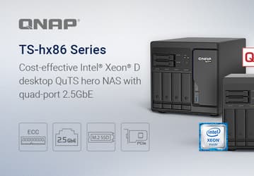 Сетевые хранилища Qnap TS-hx86 для предприятий построены на процессорах Intel Xeon D и оснащены портами 2,5 GbE