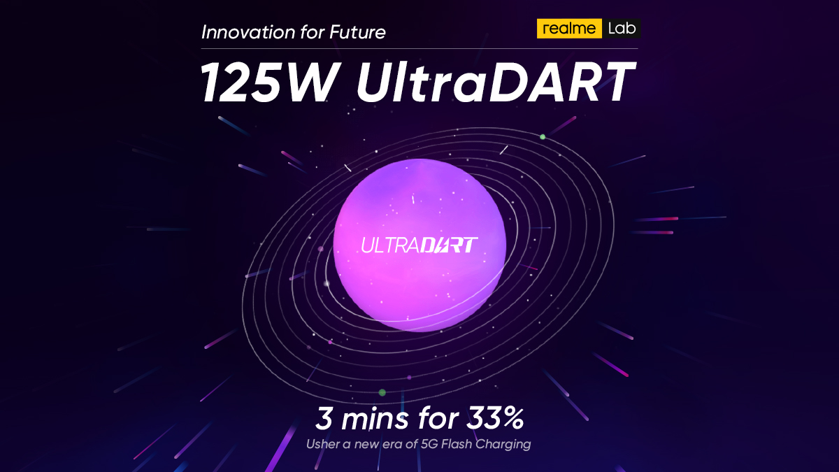 realme 125W ULTRADART fast charging tech announced in China. 3mins charge will fill up the 4000mAh🔋 up to 33% !🤯#realme #ULTRADART pic.twitter.com/ACuWRK7i67