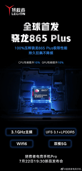 В Сети появилась официальная тизерная картинка, посвященная смартфону Lenovo Legion Rescuer. Она подтверждает две вещи. Первая — смартфон действительно будет построен на однокристальной платформе Qualcomm Snapdragon 865+. Собственно, он станет первым в мире на базе этой SoC. Вторая — представят новинку в Китае, вечером 22 июля.