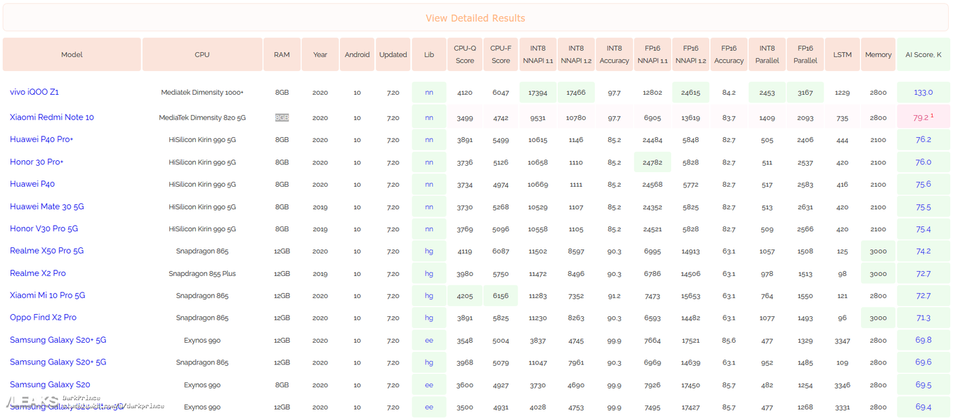 Еще весной этого года первые 11 позиций в этом бенчмарке занимали мобильные телефоны Huawei и Honor. Теперь же ситуация изменилась, первое место занимает vivo iQOO Z1 на базе однокристальной системы Mediatek Dimensity 1000+, а на второй позиции оказался Xiaomi Redmi Note 10, который получил мобильную платформу MediaTek Dimensity 820 5G. Устройство получило 8 ГБ оперативной памяти и работает под управлением операционной системы Android 10.