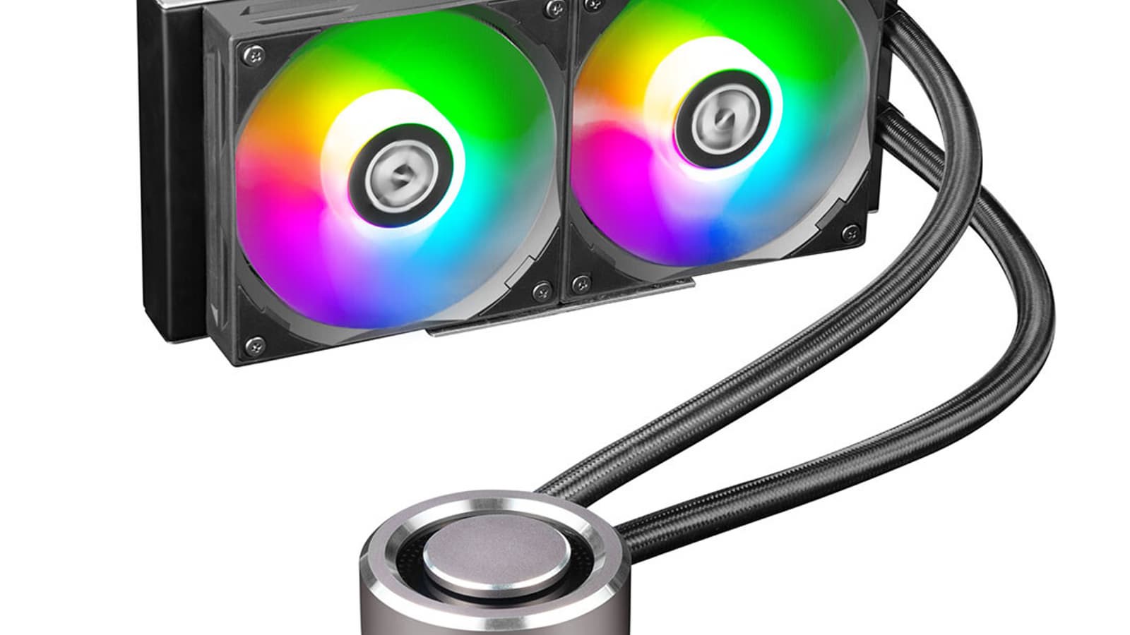 Радиатор украшен логотипом производителя. В зависимости от модели, на радиаторе закреплено два или три 120-миллиметровых вентилятора. Они вращаются со скоростью от 800 до 1900 об/мин, получая ШИМ-питание по 4-контактному разъему. Вентиляторы украшены подсветкой ARGB, рассчитанной на подключение к 3-контактному разъему. Подсветка ARGB также есть на помпе, совмещенной с водоблоком.