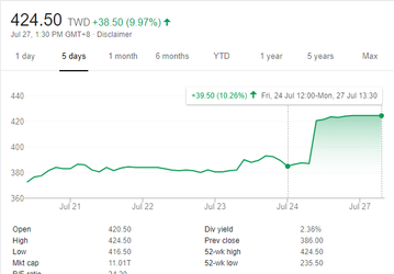 Известие, что Intel будет заказывать выпуск продукции у TSMC, вывело акции TSMC на 12 место в мире по суммарной стоимости