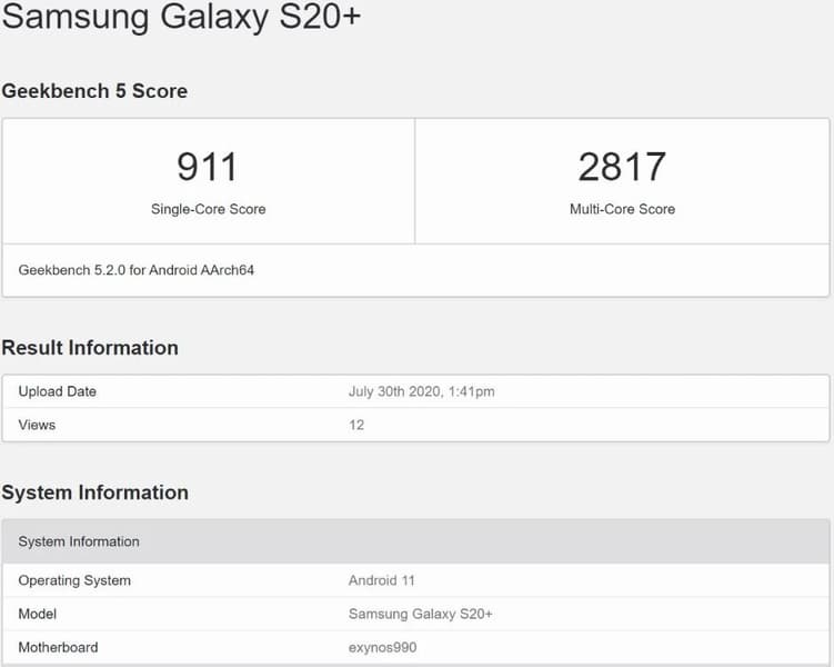 Точнее, аппарат замечен в базе данных бенчмарка Geekbench. В тестовых данных – ничего нового кроме, собственно, самой Android 11. Она станет доступна пользователям линейки Galaxy S20, скорее всего, или к концу текущего года, или в начале следующего. Причем вместе с ней выйдет фирменный интерфейс One UI 3.0. Правда, еще до этого Galaxy S20 должны примерить интерфейс One UI 2.5, который впервые появится на флагманах Galaxy Note20. Премьера Galaxy Note20, напомним, состоится послезавтра – 5 августа.