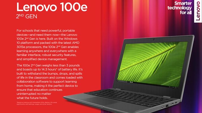 Новинки называются Lenovo 100e 2nd Gen и Lenovo 300e 2nd Gen. Первый оценивается всего в 220 долларов, второй — в 300 долларов. Оба основаны на новейшем APU AMD 3015e. Также немаловажной особенностью является наличие у обеих новинок адаптера Wi-Fi 6. Вполне возможно, новинки Lenovo — это самые дешёвые ноутбуки с Wi-Fi 6.