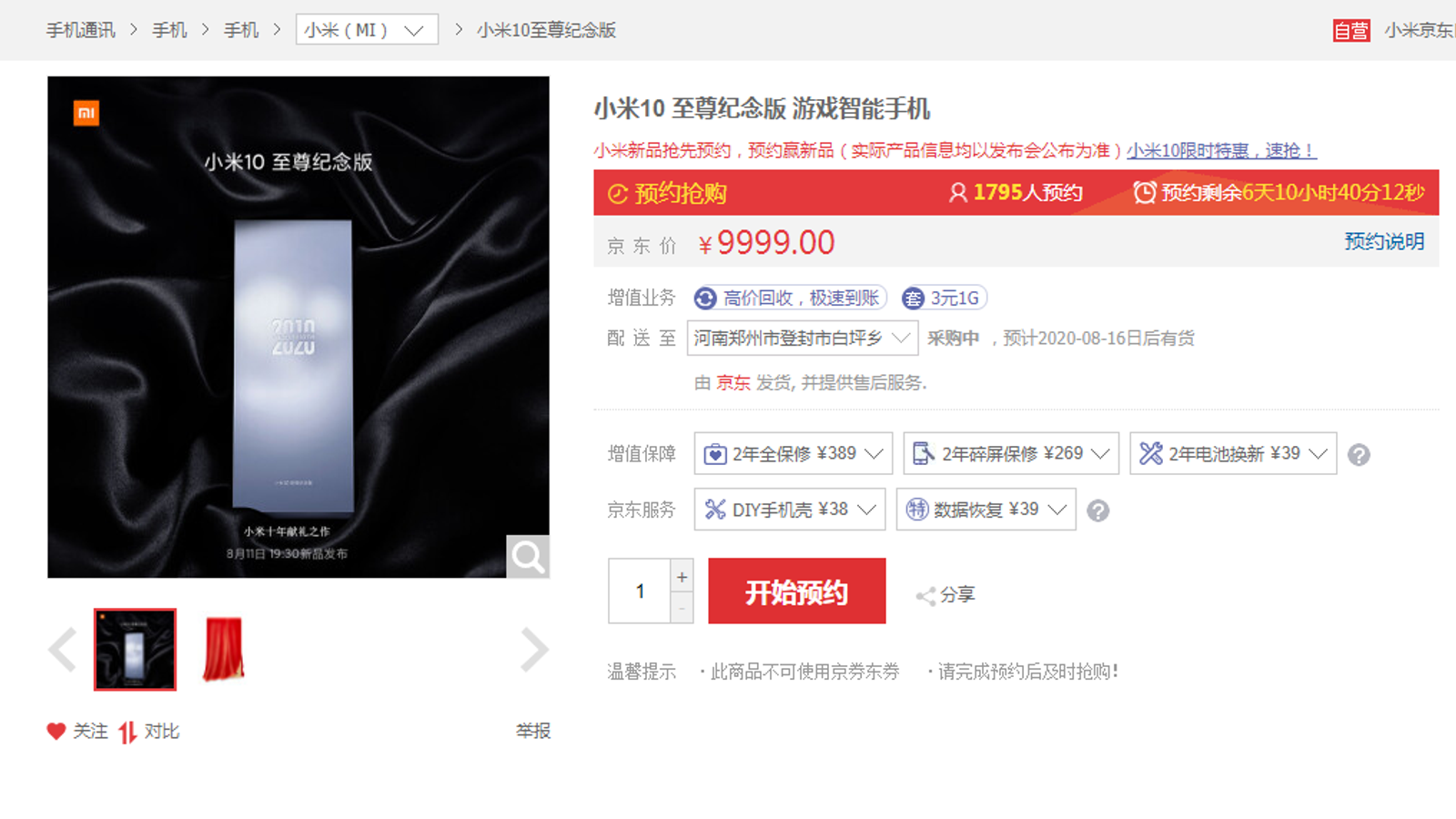 На сайте популярного китайского онлайнового магазина Jingdong стал доступен для предварительного заказа смартфона Xiaomi Mi 10 Extreme Commemorative Edition, который будет выпущен в честь 10-летия компании.