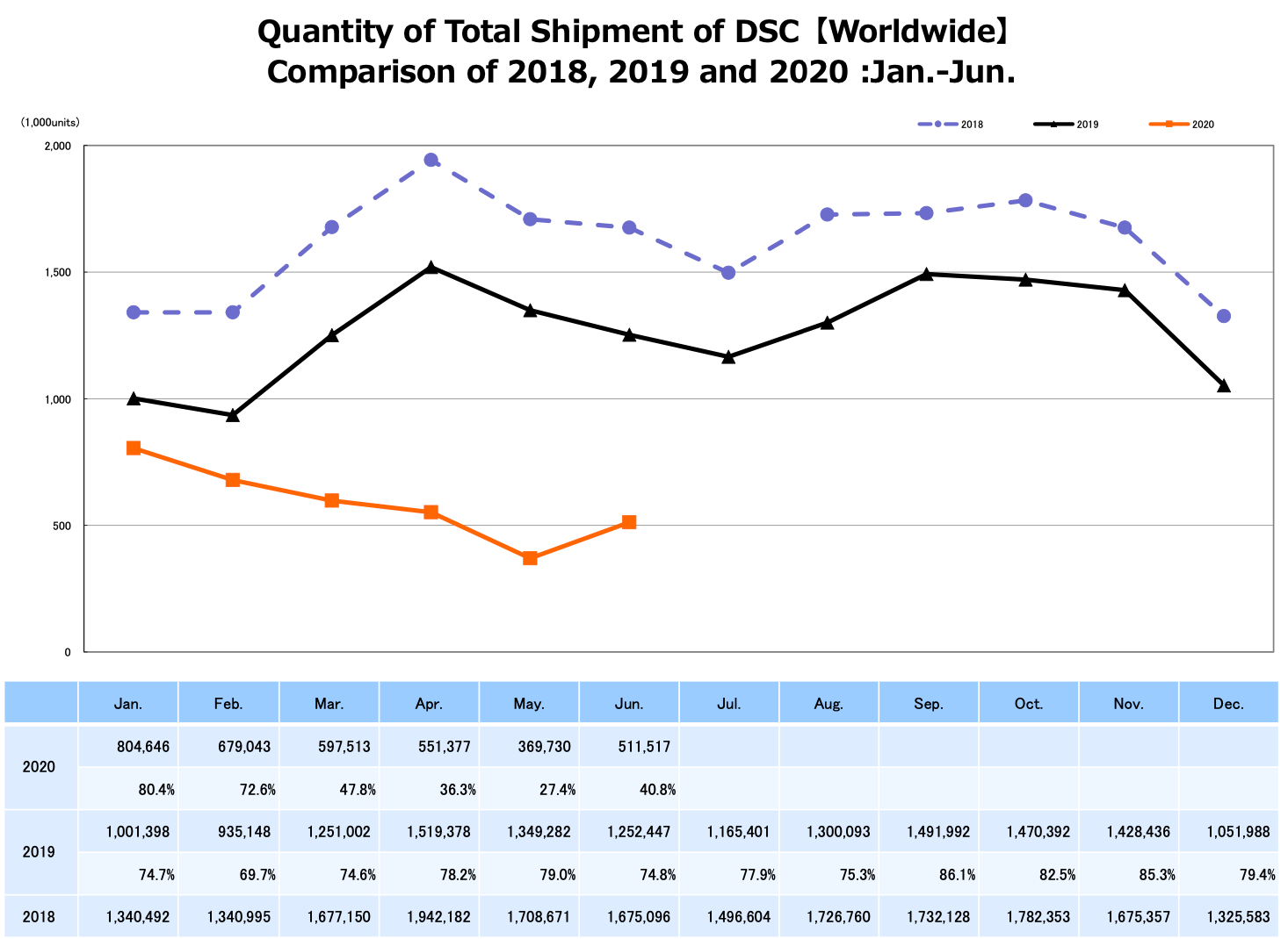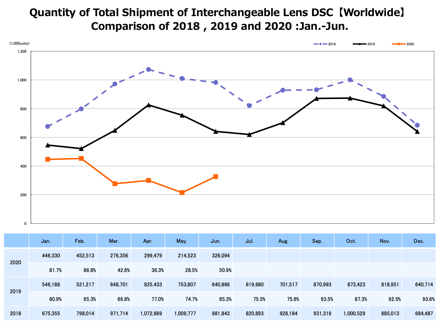 Японская ассоциация производителей камер CIPA, объединяющая Canon, Fujifilm, Nikon, Olympus, Panasonic, Ricoh, Sony и других производители фототехники, опубликовала статистику продаж цифровых камер и сменных объективов за июнь текущего года. Эти данные показывают, что продажи по сравнению с маем увеличились. Однако по сравнению с июнем прошлого года сокращение очень значительное.