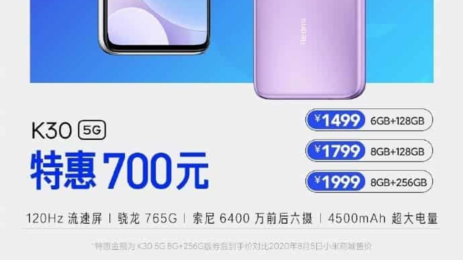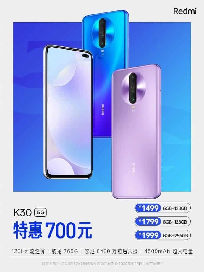 В данный момент версия Redmi K30 5G с 6 ГБ оперативной памяти и 64 ГБ энергонезависимой памяти предлагается по цене всего 216 долларов вместо оригинальной цены 349 долларов. Версия с 6 ГБ ОЗУ и 128 ГБ флэш-памяти стоит 259 долларов, а за версию с 8/256 ГБ памяти просят 288 долларов.