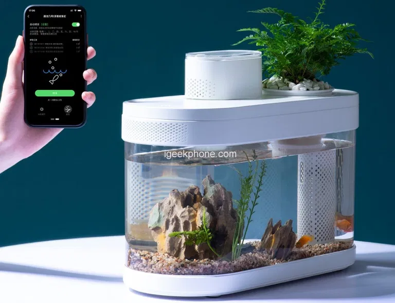 Пользователи могут подключить аквариум к обычном розетке или портативному аккумулятору. Xiaomi Smart Fish Tank Pro оснащен двойной системой фильтрации, способной очистить всю воду всего за несколько минут. Он также получил модуль Wi-Fi для связи со смартфоном, который позволяет управлять аквариумом.