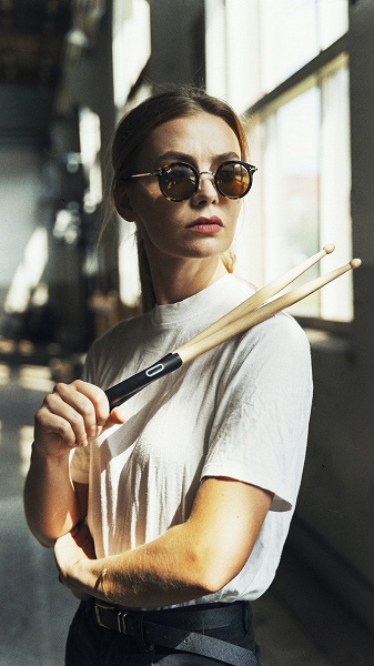 Как и прежде, на каждой палочке крепится небольшое устройство. Еще два датчика, которые отвечают за бас-бочку и хай-хет, закрепляются на ногах. Устройства сопрягаются со смартфоном, на котором установлено специальное приложение, после чего можно приступать к игре, а чтобы не беспокоить окружающих, можно выводить звук в наушники.