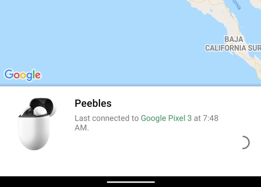 Если воспользоваться приложением или сервисом Find My Device, можно увидеть, к какому аппарату наушники были подключены в последний раз, а также дату и время подключения. Эта информация отображается на карте рядом со значком наушников. Запросить поиск устройства из приложения Pixel Buds пока невозможно.