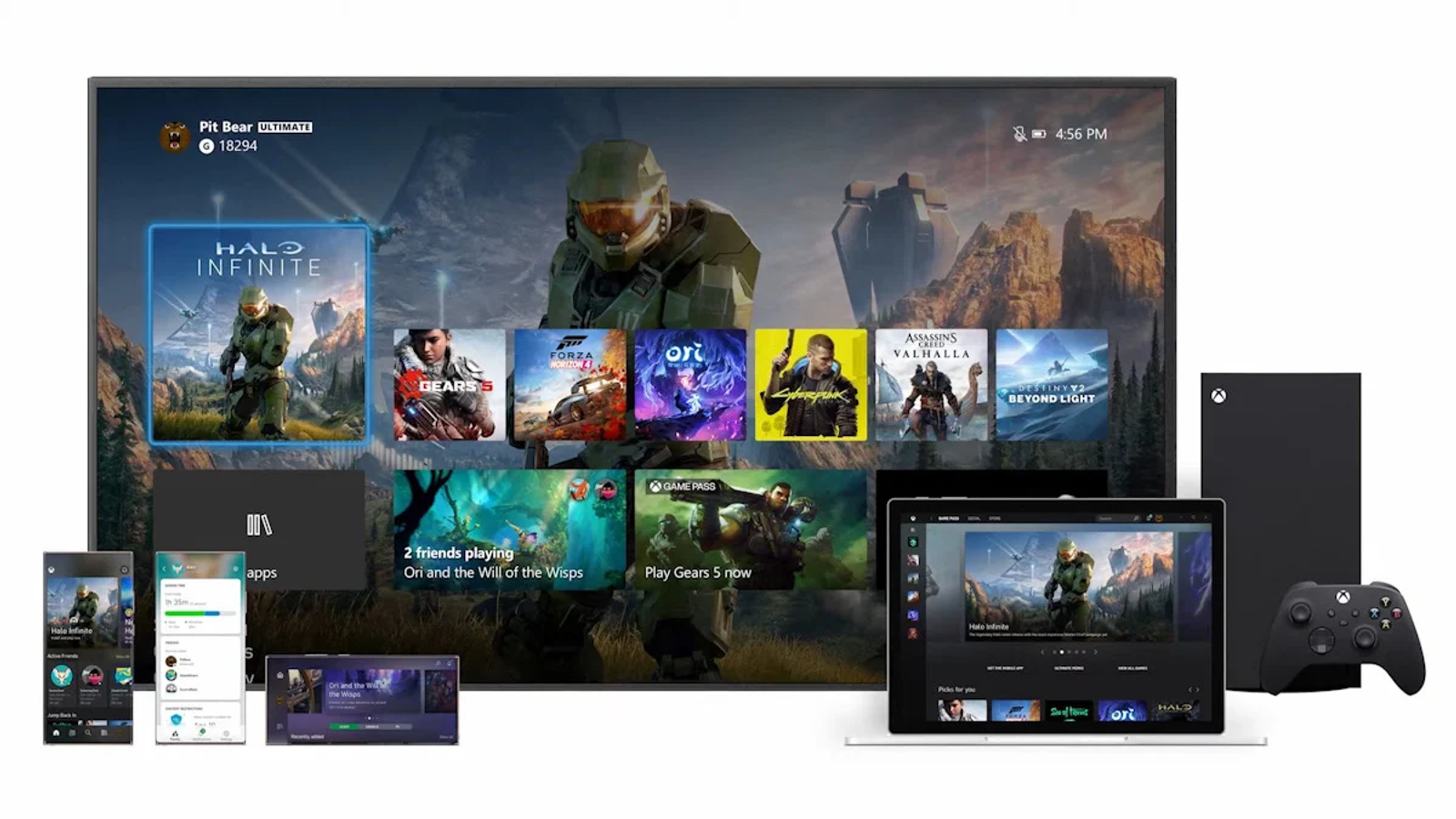 Помимо всего прочего, в ролике показывается новый интерфейс консоли Xbox Series X и сопутствующих приложений на других устройствах.
