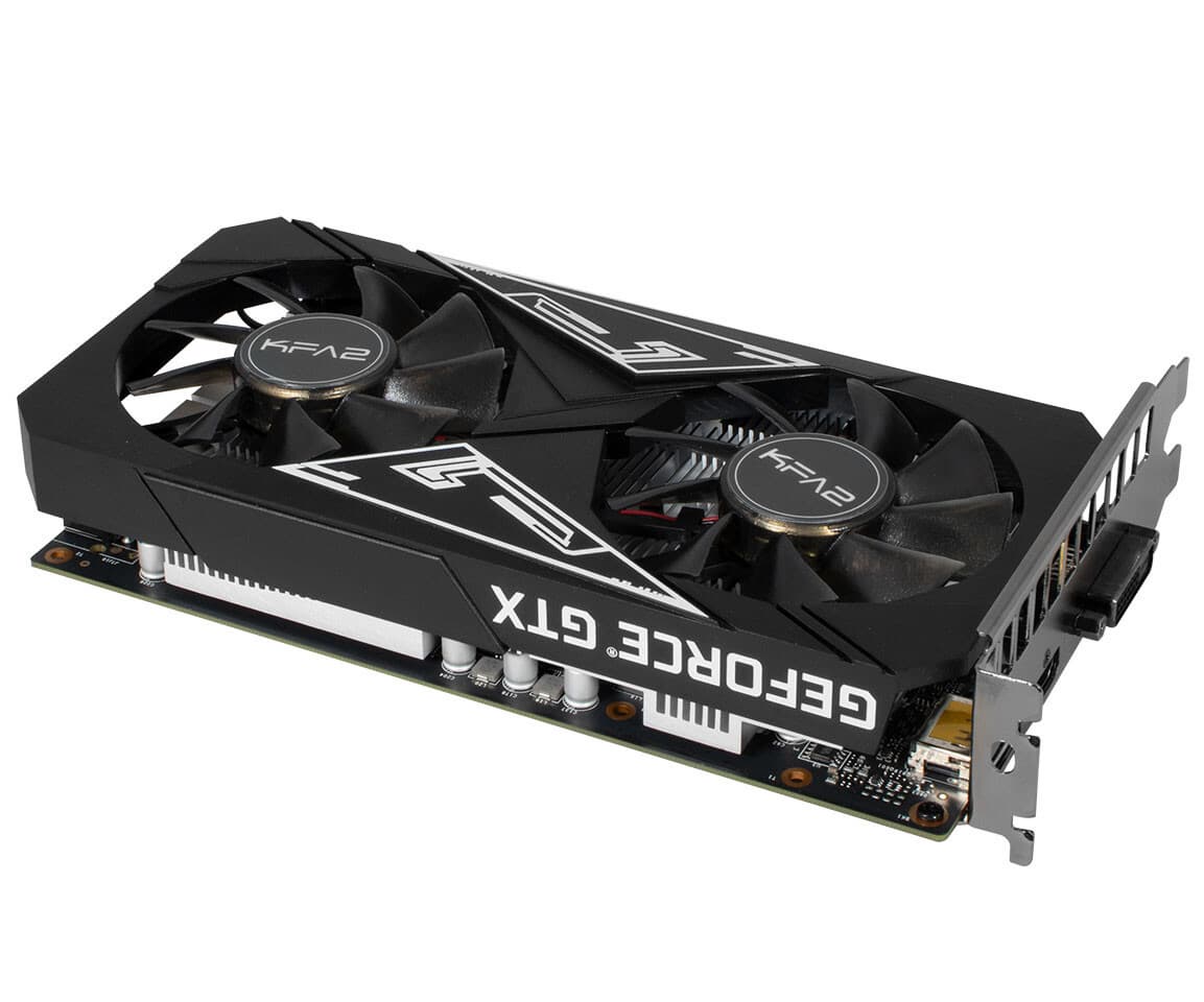 Под маркой KFA2, используемой компанией Galax на европейском рынке, представлена видеокарта GeForce GTX 1650 GDDR6 EX Plus. Особенностью этой модели можно считать отсутствие разъемов дополнительного питания PCIe — карте хватает питания, поступающего через контакты слота расширения.