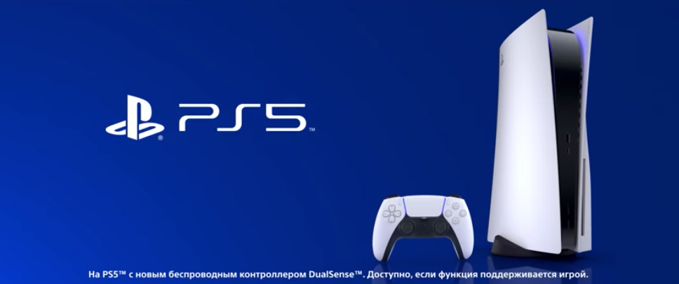Рекламное видео демонстрирует игровой процесс и некоторые функции консоли. Показывается новый беспроводной игровой контроллер DualSense с адаптивными курками.