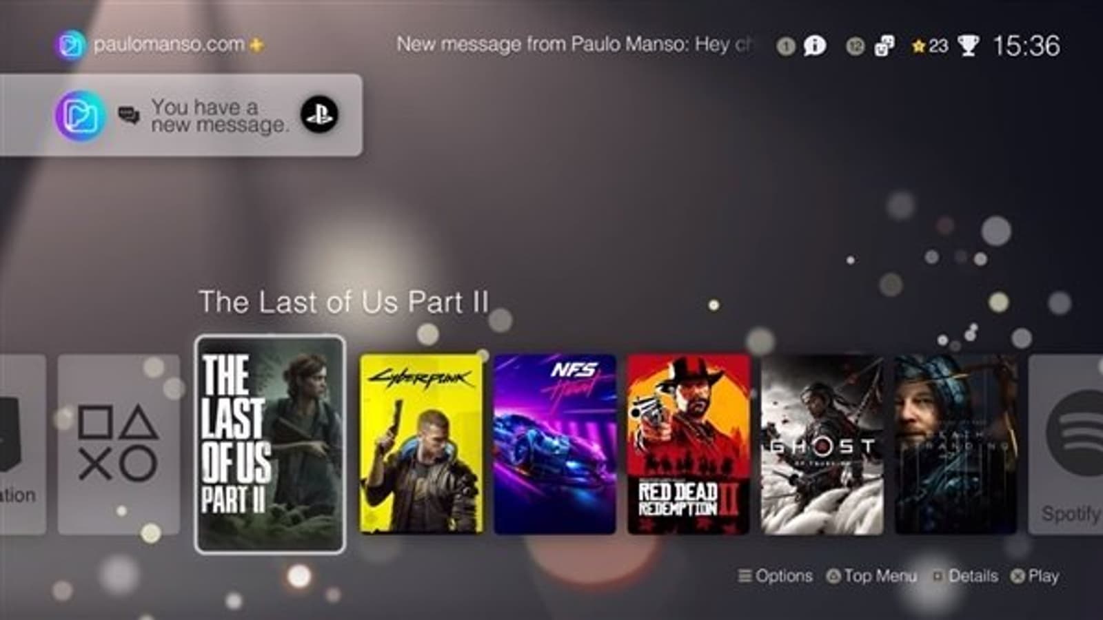 Так, перечень игр и программ сдвинут к нижней части экрана, уведомлениям отдан правый верхний угол. Сообщения игроков выводятся в верхней части экрана. Интересно, что некоторые темы оформления графического интерфейса PlayStation 5 сопровождаются не только звуковыми эффектами, но еще и световыми, а также вибрацией контроллера DualSense.