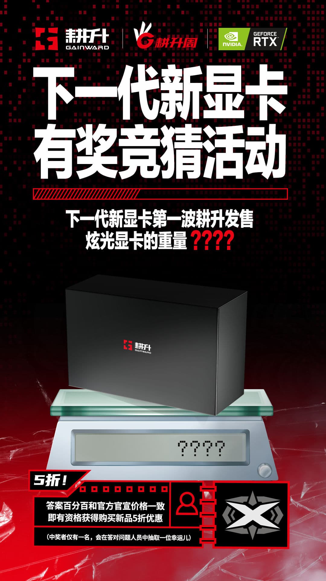 Что касается Gainward, тот тут тизеров только два, но для пользователей они даже в какой-то степени более полезны. Дело в том, что тизеры запущены одновременно с двумя конкурсами: первый предлагает угадать стоимость видеокарт, другой — массу. Тем, кто окажется прав, обещана скидка на новинки в размере 50%! К сожалению, конкурсы актуальны только для китайской аудитории. Впрочем, и о цене, и о габаритах новинок уже кое-что известно.