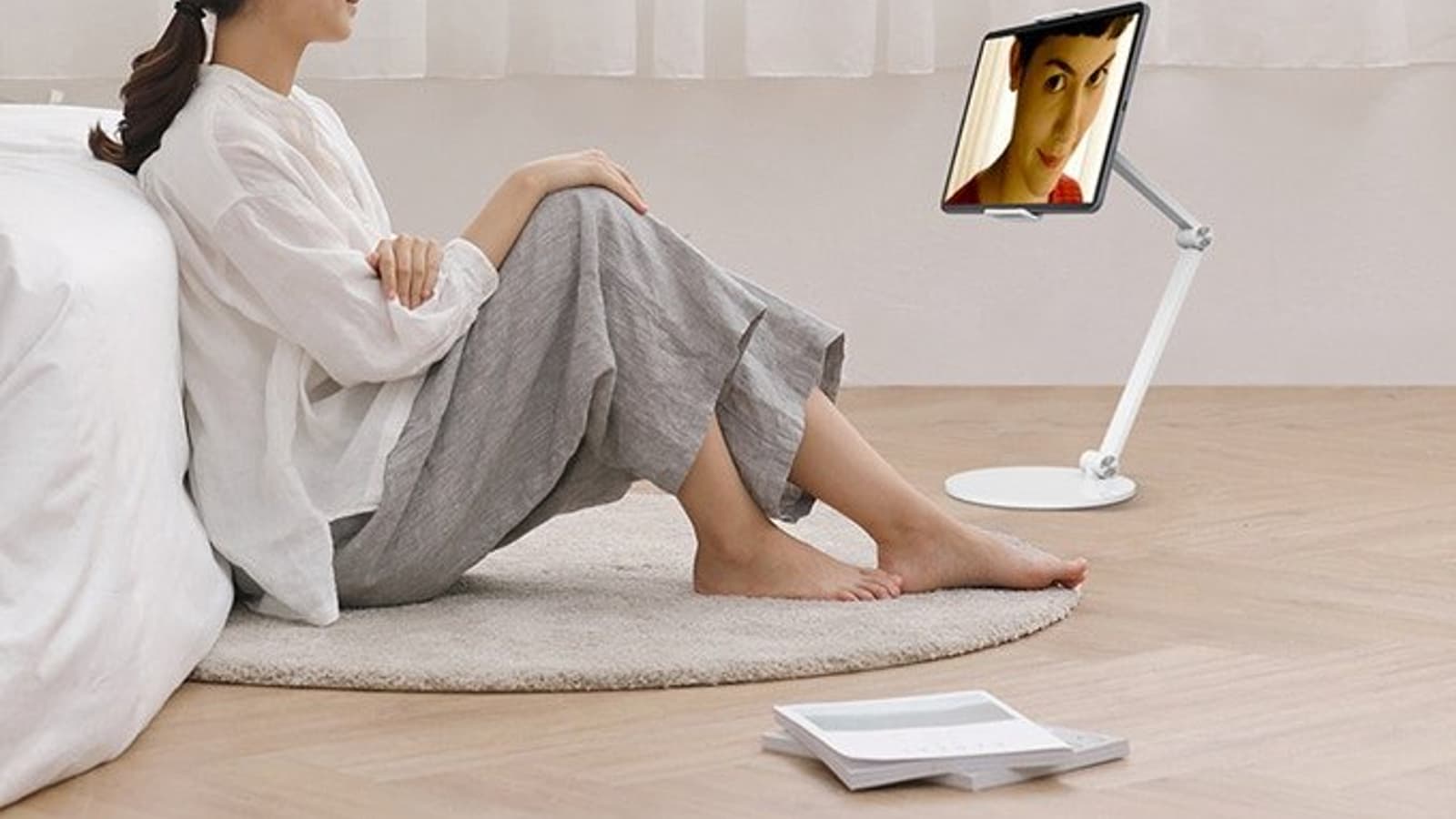 Подставка изготовлена из алюминиевого сплава, что делает ее легкой, прочной и устойчивой. Нижняя поверхность опоры имеет резиновое покрытие. Конструкция обеспечивает регулировку в широких пределах высоты, угла наклона и поворота экрана. В то же время, в сложенном виде подставка получается весьма компактной. Изделие совместимо с широким кругом мобильных устройств, оснащенных экранами размером от 4,7 до 12,9 дюйма. Оно рассчитано на нагрузку до 1 кг.