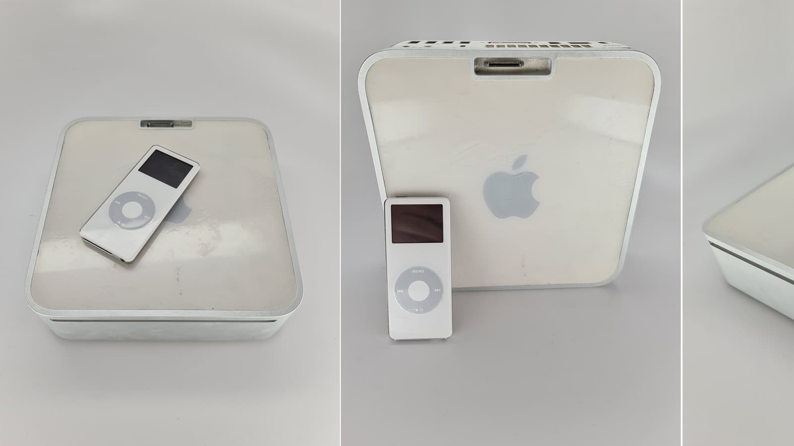 Пользователь Twitter под ником @DongleBookPro поделился изображениями прототипа компьютера Mac mini первого поколения со встроенной док-станцией для iPod nano.