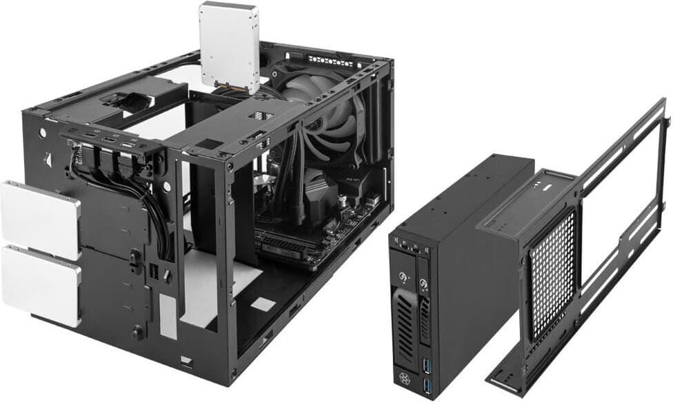 Интересной деталью Sugo 14 является универсальное крепление, которое можно использовать для установки оптического привода, сменного лотка для накопителей, радиатора СЖО, пары накопителей типоразмера 3,5 дюйма или комбинации из одного накопителя и 120-миллиметрового радиатора и т.д. Сформировать воздушный поток позволяет наличие задних точек для 140-миллиметрового вентилятора на задней стенке и двух 120-миллиметровых — на боковой. Цену производитель не называет.