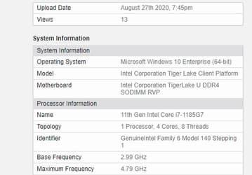 Он построен на платформе Intel Tiger Lake