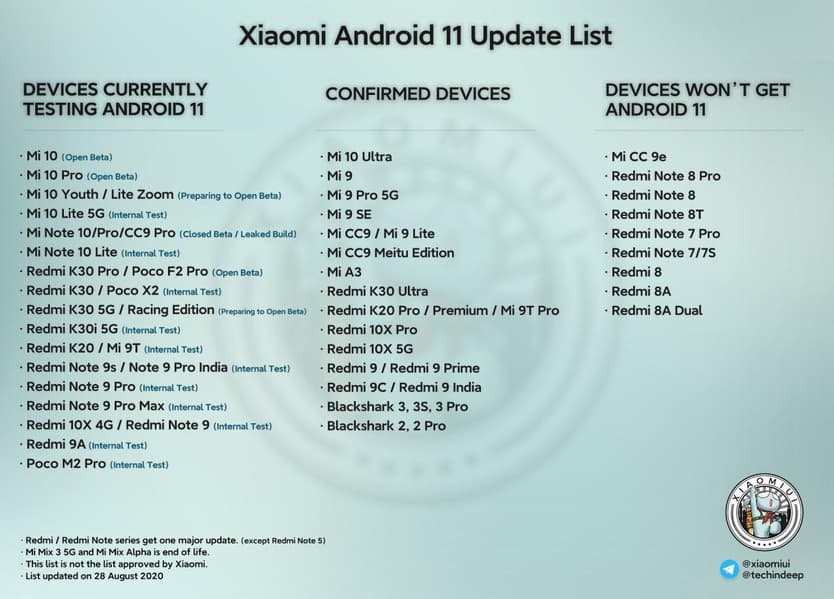 Стабильный релиз Android 11 ожидается в сентябре или октябре. Тогда же могут начать выходить первые стабильные сборки MIUI 12 на основе этой версии ОС. Пока же стабильная MIUI 12 базируется на Android 10.