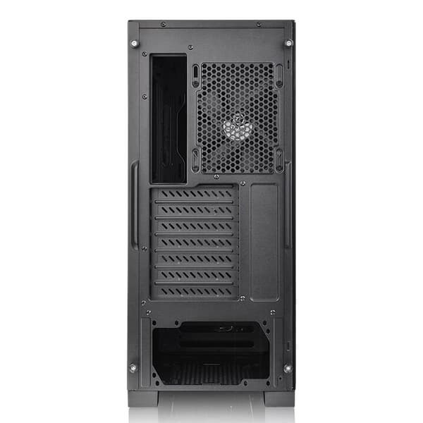 На передней стенке можно закрепить два 200-миллиметровых или 140-миллиметровых вентилятора. Вентиляционные отверстия расположены по бокам. Сверху также возможна установка двух 200-миллиметровых или 140-миллиметровых вентиляторов. Один 120-миллиметровый размещается сзади (он установлен производителем).