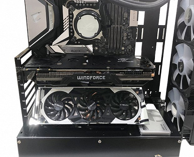 Особенно занятно, видимо, в отражении будут смотреться референсные видеокарты Nvidia нового поколения с их «перевёрнутыми» охладителями.