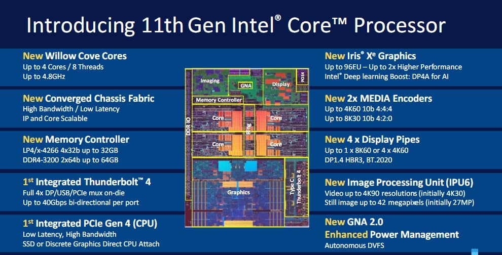 Компания Intel сегодня представила свои новые процессоры Core 11-го поколения. Об основных параметрах CPU линейки Tiger Lake мы уже всё написали, теперь пришёл черёд оставшейся информации.