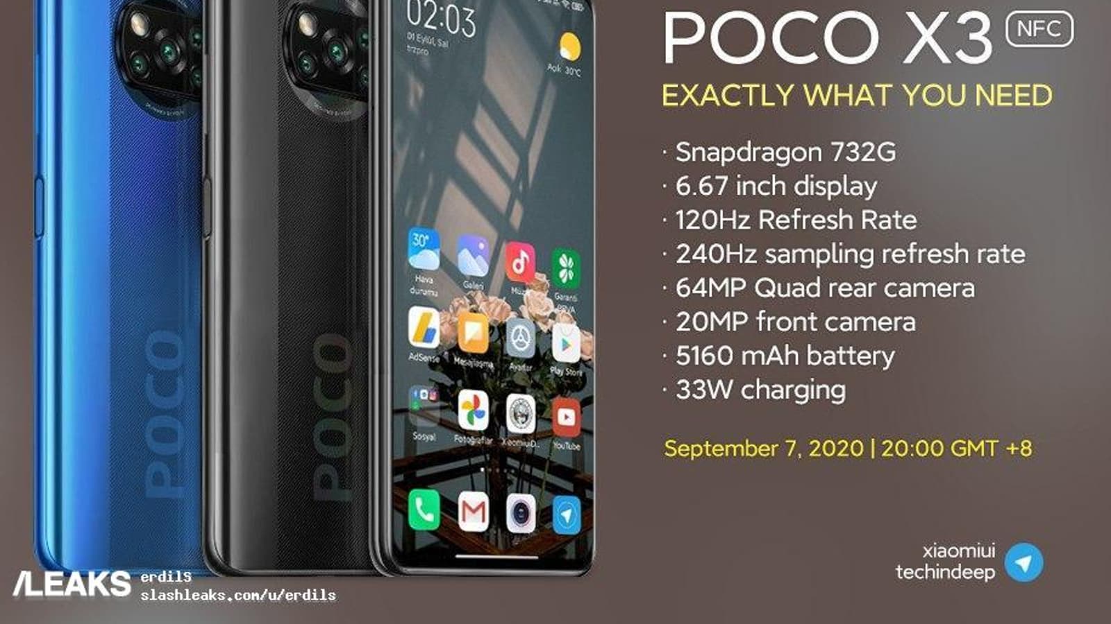 Ранее компания Poco официально заявила, что презентация нового смартфона Poco X3 NFC состоится 7 сентября 2020 года.