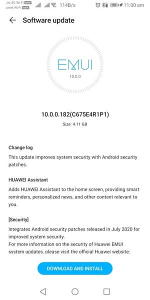 Прошивка EMUI 10.0.0.182 доступна «по воздуху» и имеет внушительный размер в 4,11 ГБ. Перед установкой рекомендуется создать резервную копию информации на смартфоне.