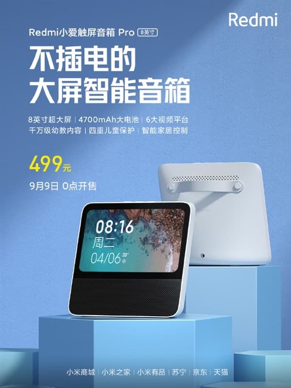 Сегодня компания анонсировала обновленную версию устройства под названием Redmi XiaoAI Touchscreen Speaker Pro. Гаджет оснащён 8-дюймовым сенсорным дисплеем, который можно использовать для просмотра видеороликов и музыкальных клипов.