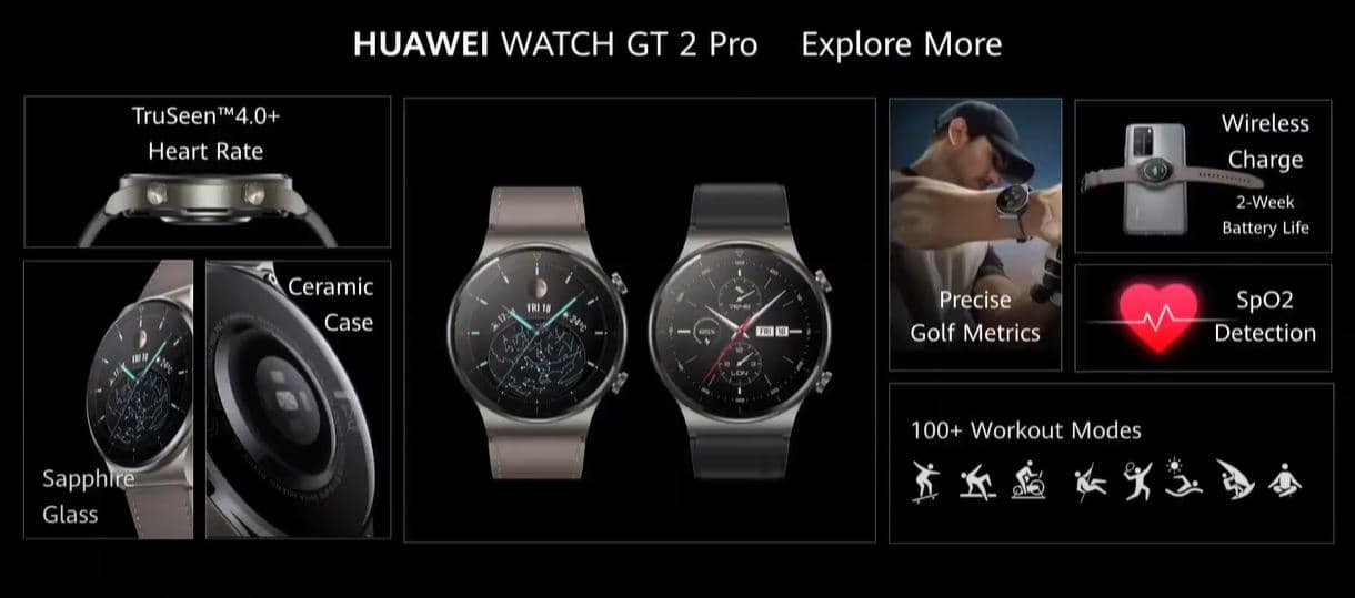 Габариты Watch GT 2 Pro — 46,7 х 46,7 х 11,4 мм. Дисплей AMOLED устройства характеризуется диагональю 1,39 дюйма и разрешением 454 х 454 пикселя.