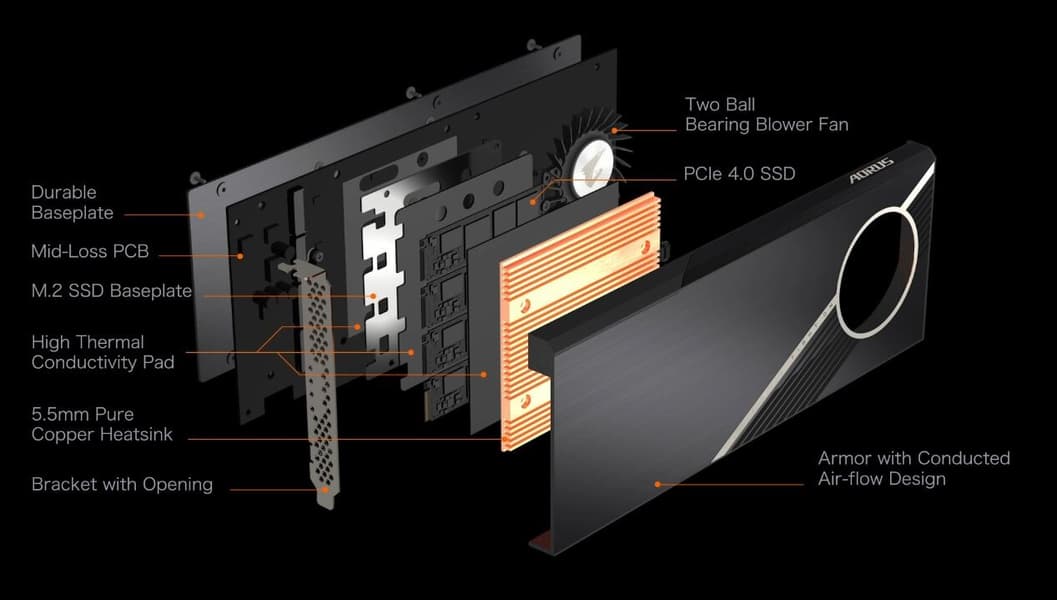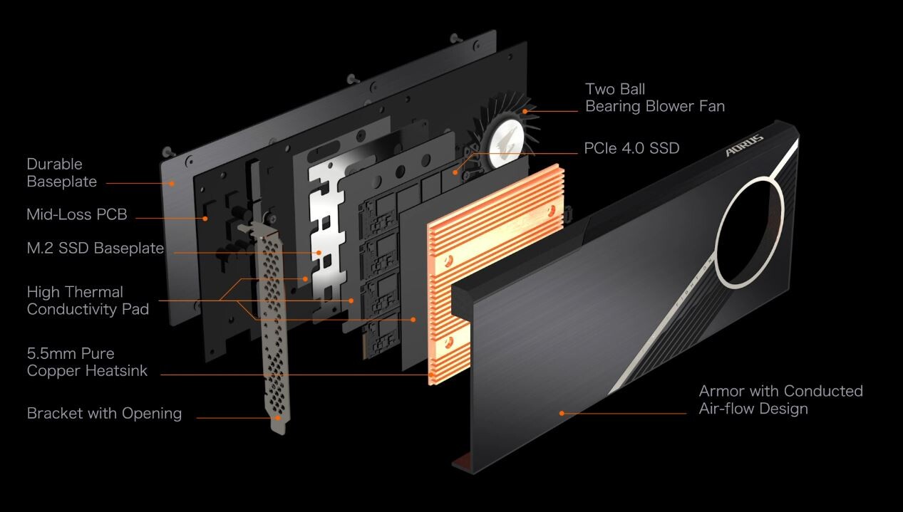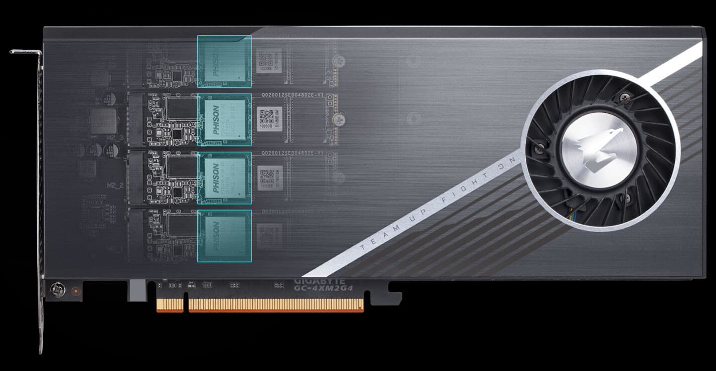 Компания Gigabyte представила твердотельный накопитель Aorus объемом 2 ТБ, выполненный в виде карты расширения с интерфейсом PCIe Gen 4. С точки зрения конструкции, это карта-переходник для слота PCI-Express 4.0 x16, на которой установлено четыре накопителя типоразмера M.2 объемом по 500 ГБ с интерфейсом PCIe Gen 4 x4.