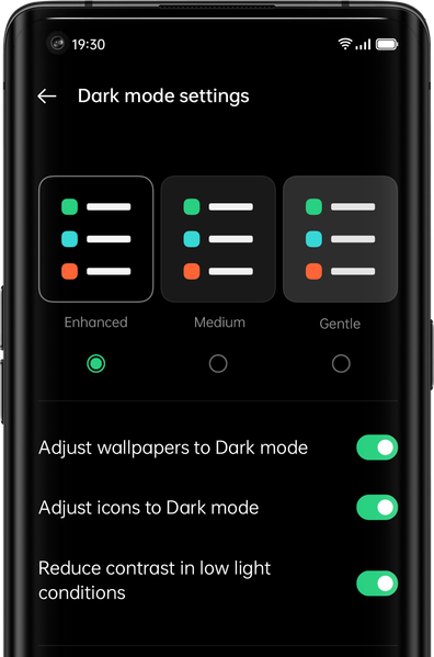 Система дает возможность настроить рабочий экран, создавать обои, шрифты, иконки и рингтоны, а также использовать улучшенную тёмную тему с тремя цветовыми вариантами и уровнями контрастности.