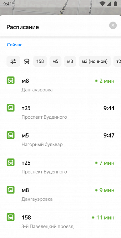 Расписание транспорта доступно почти для всех городов в России. Данные собирают картографы Яндекса, а также их передают партнёры — компании, которые обеспечивают движение общественного транспорта.