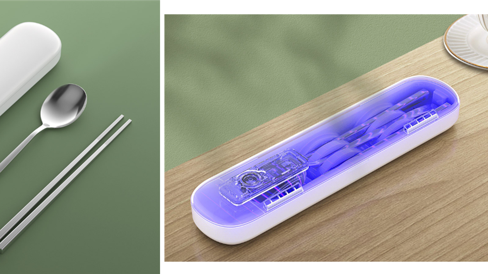 Портативный стерилизационный бокс Moonyee использует тройную ультрафиолетовую систему стерилизации, эффективность работы которой составляет 99,99%. Его можно использовать для стерилизации столовых приборов во время приёма пищи вне дома.