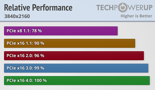 Как можно видеть, в среднем нет. Разница в скорости между PCIe 3.0 и PCIe 4.0 в случае новинки Nvidia составляет лишь 1%, то есть ею можно пренебречь. Более того, разница с PCIe 2.0 также очень незначительна, да и потерю при переходе на PCIe 1.1 (x16) тоже нельзя назвать катастрофической.