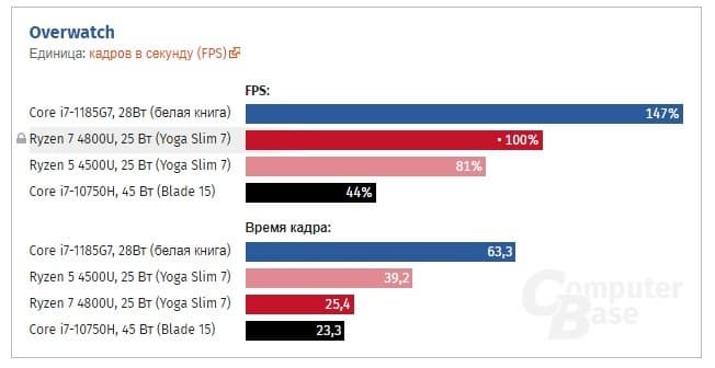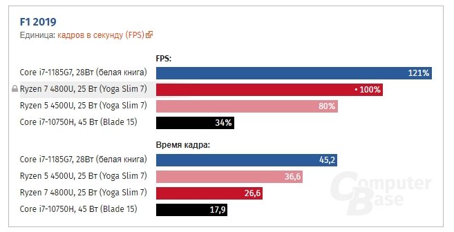Также один из источников отмечает, что в режиме 28 Вт Core i7-1185G7 на самом деле потребляет до 36 Вт, тогда как восьмиядерный Ryzen 7 4800U — 30 Вт. Но, повторимся, в каждом конкретном ноутбуке лимиты мощности и возможности системы охлаждения всё равно будут разные, так что тут можно пожурить новинку Intel лишь условно.