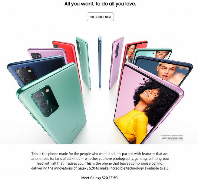 Новинка поступит в продажу в шести цветах. По сути, осталось только узнать стоимость модели, но, по слухам, в Европе Galaxy S20 FE можно будет купить за 700 евро.