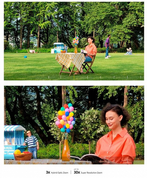 Объем оперативной памяти составил 8 ГБ, объем встроенной флэш-памяти — 128 ГБ. Фронтальная камера характеризуется разрешением 32 Мп, разрешением датчиков основной камеры — 12, 12 и 8 Мп. Последний обеспечивает 3-кратный оптический зум, а в целом максимальный зум — 30х.