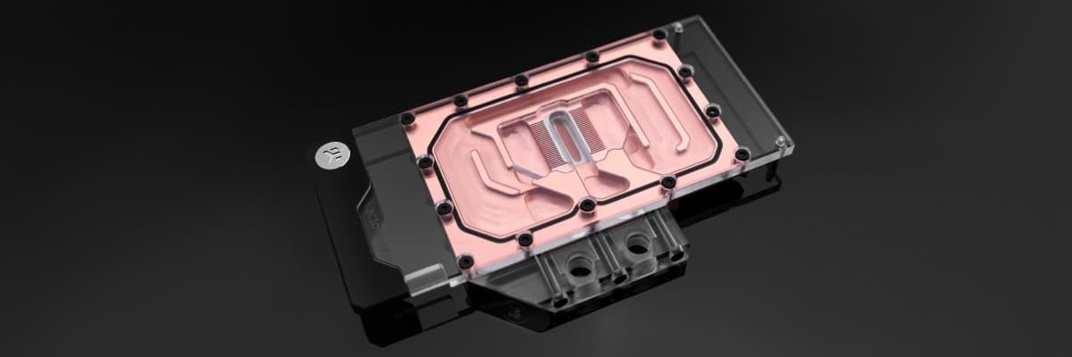 Новинка относится к категории водоблоков с полным покрытием, отводя тепло от графического процессора, микросхем памяти и регуляторов напряжения. К ее достоинствам производитель относит схему с разделением потока охлаждающей жидкости, которая обеспечивает низкое гидродинамическое сопротивление, делая водоблок хорошо подходящим даже для систем с помпами небольшой мощности. На участке, прилегающем к GPU, сформирован массив из 27 ребер, между которыми пролегают микроканалы шириной 0,5 мм.