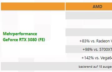 GeForce RTX 3080 cравнили с GeForce RTX 2080 Ti, RTX 2080 Super, RTX 2080, RTX 2070 Super, GTX 1080 Ti, GTX 1080, AMD Radeon 5700 XT, Radeon VII и Vega64