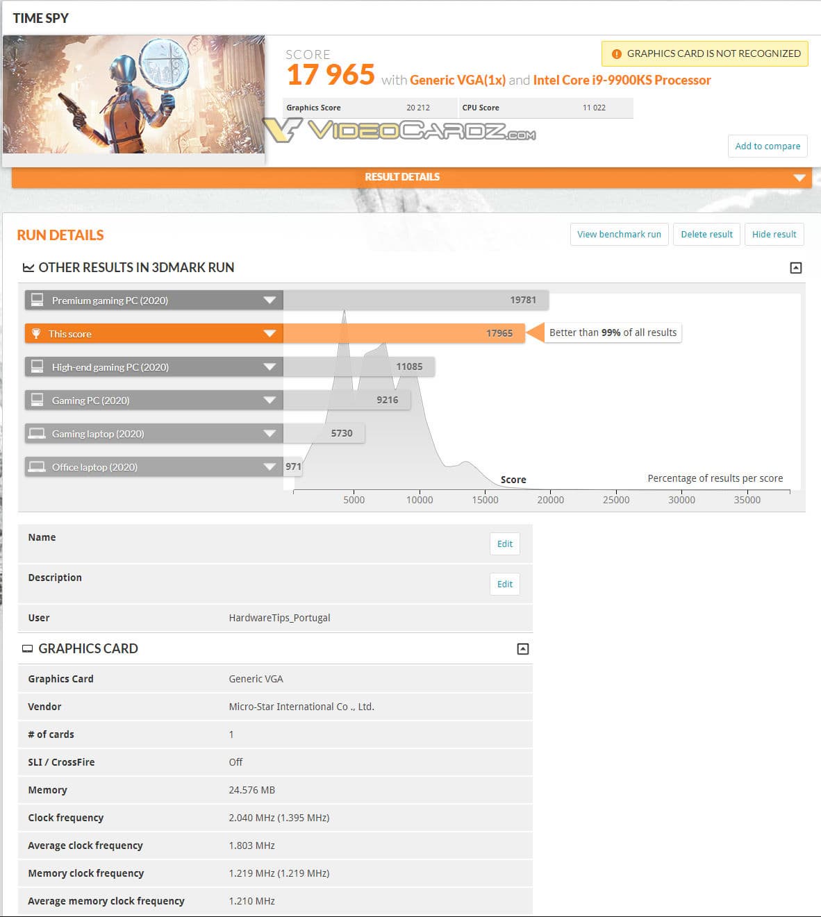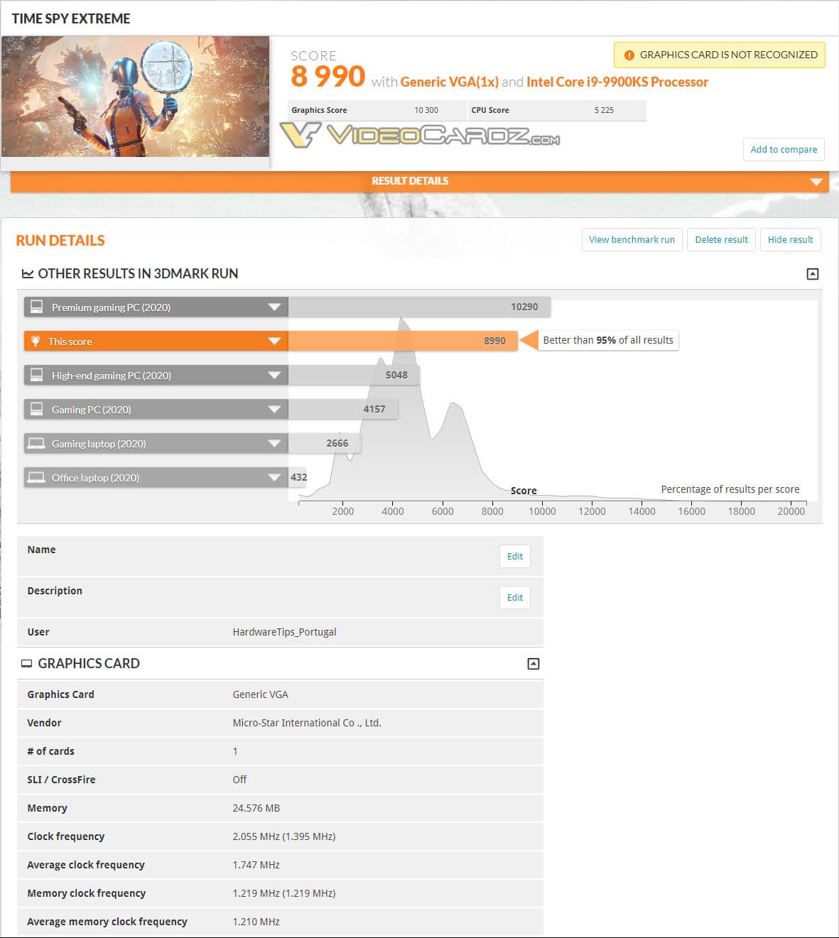 Как видно, GeForce RTX 3090 набрала свыше 10000 баллов в Time Spy Extreme и более 20000 баллов в Time Spy Performance. Это примерно на 20% больше результата GeForce RTX 3080 (другие тесты подтверждают такую разницу между GeForce RTX 3090 и RTX 3080) и на 50% больше результата GeForce RTX 2080 Ti. Так что GeForce RTX 3090 выглядит вполне адекватной заменой предшественницы.
