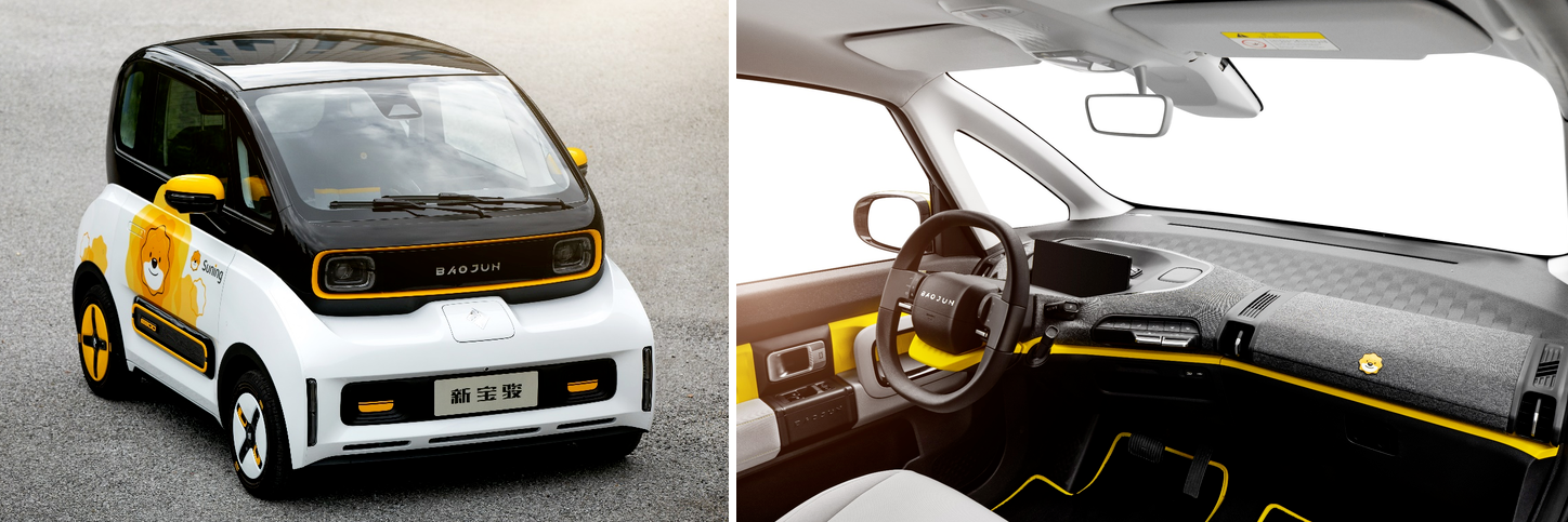 Электромобиль Baojun E300 имеет небольшую мощность всего 39 л.с., а длина кузова не превышает 3 м. Он оснащен синхронным двигателем с постоянными магнитами и литий-железо-фосфатным аккумулятором ёмкостью 30 кВт•ч, которого хватает примерно на 300 км.