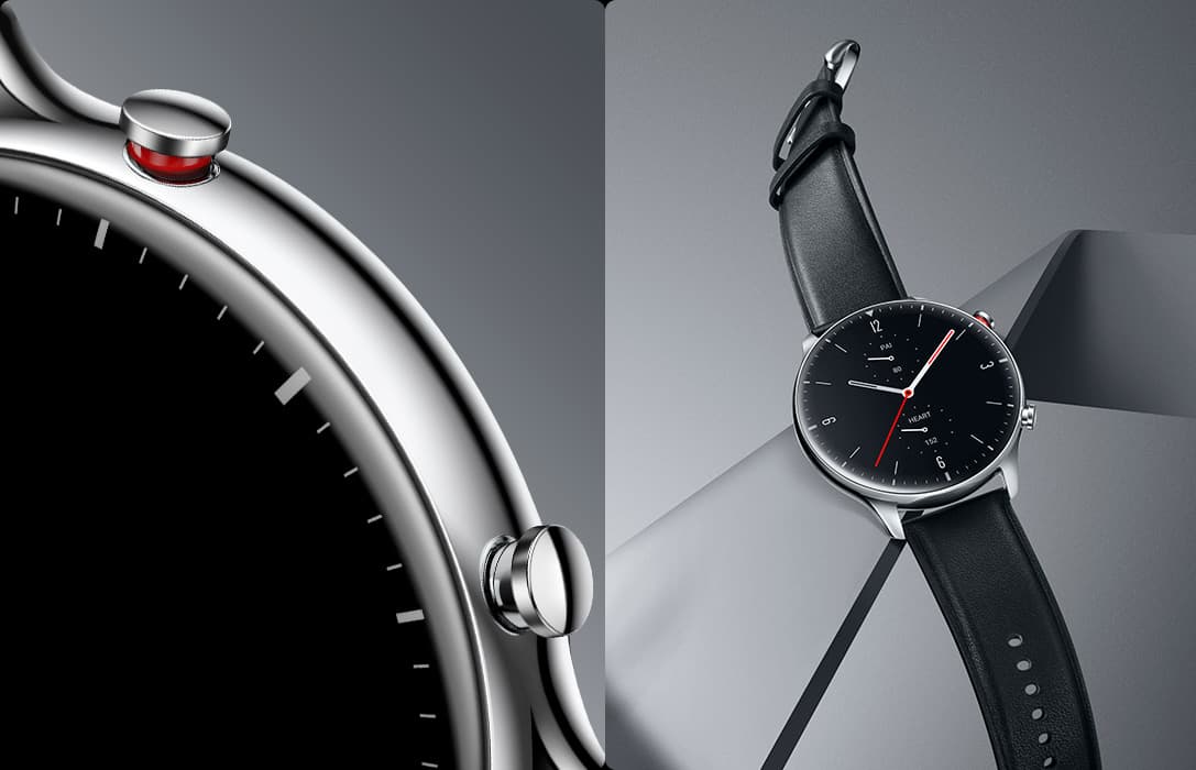 Amazfit GTR 2 доступны в классической и спортивной версии. Диаметр экрана AMOLED составляет 1,39 дюйма при максимальной яркости 450 кд/м2. Спортивная версия имеет корпус из алюминиевого сплава и силиконовый ремешок, классический вариант из нержавеющей стали оснащён кожаным ремешком.