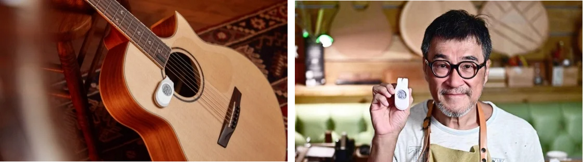 Для деревянных музыкальных инструментов, таких как гитары, подходящая температура хранения составляет 20-25 °C, а влажность — 40-50%. Когда деревянные музыкальные инструменты хранятся в ненадлежащих условиях, они склонны к деформации, растрескиванию и склеиванию. Ремонт таких музыкальных инструментов дорогой, при этом после ремонта тон может измениться. Традиционные термогигрометры не могут быть легко закреплены на корпусе инструмента. Поэтому был придуман Qingping Li Guitar.