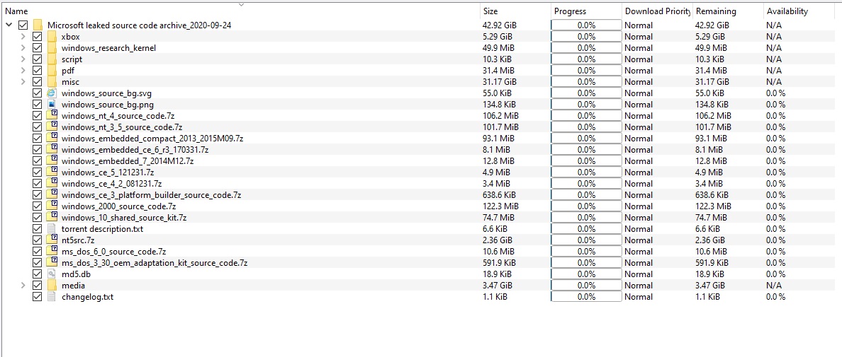 Судя по скриншоту выше, утечка содержит в себе не только исходный код Windows XP, но и других ОС Microsoft. В их числе: