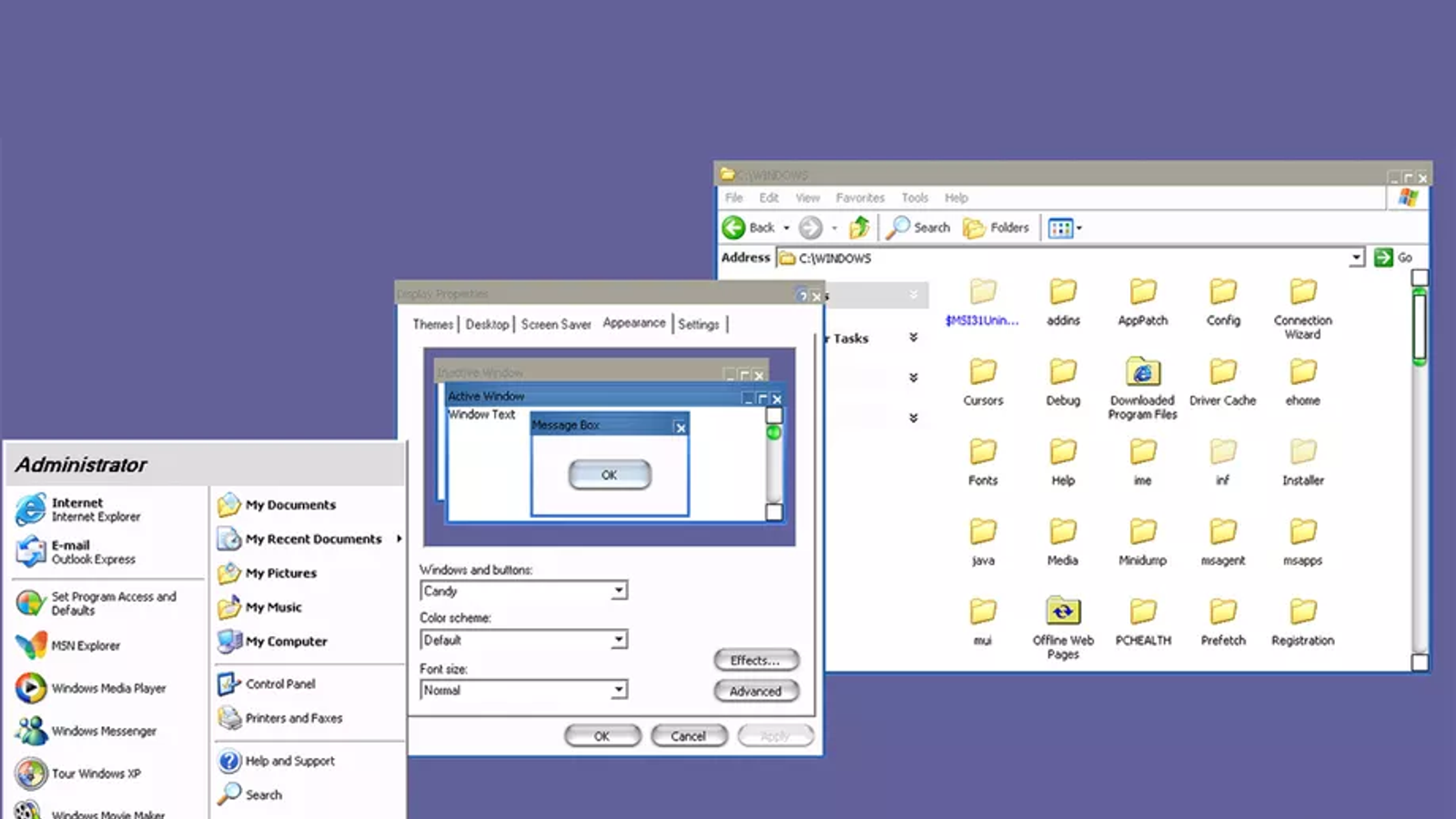 Microsoft так никогда и не выпустила эту тему для Windows XP. Судя по всему, Candy использовалась разработчиками при отладке движка тем в ОС, поскольку она отмечена как «только для внутреннего использования». Тема описывалась как Whistler skin with eye candy, тогда как Whistler было кодовым названием Windows XP.